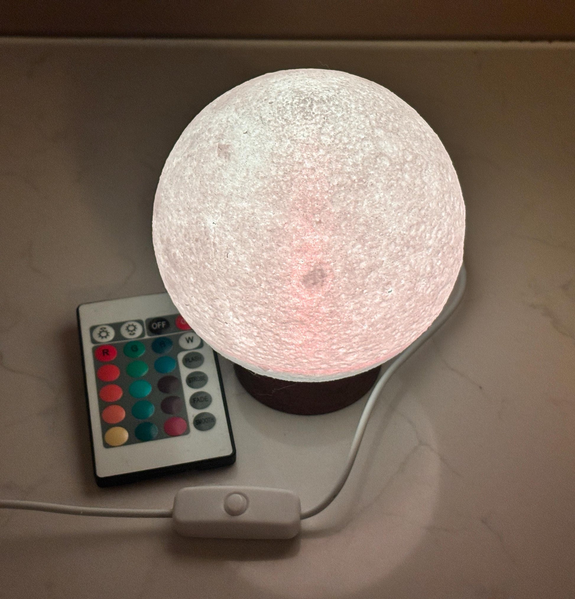 Handmade Moon Globe Night Light – Colour-Changing LED with Remote Control This handcrafted moon globe night light brings a touch of cosmic charm into your space.