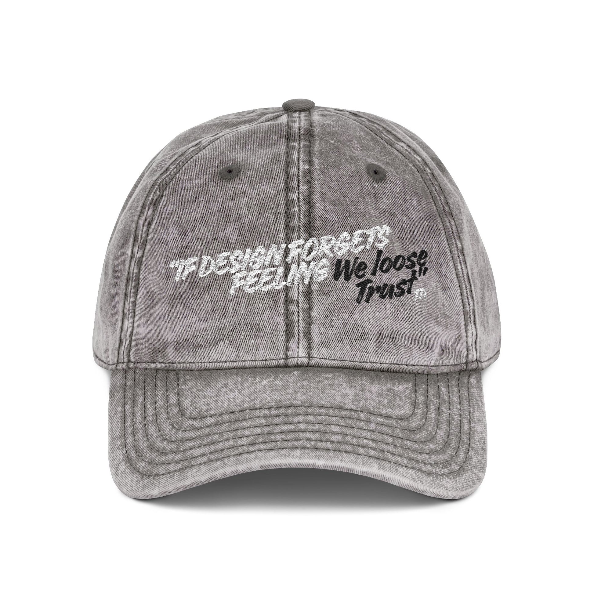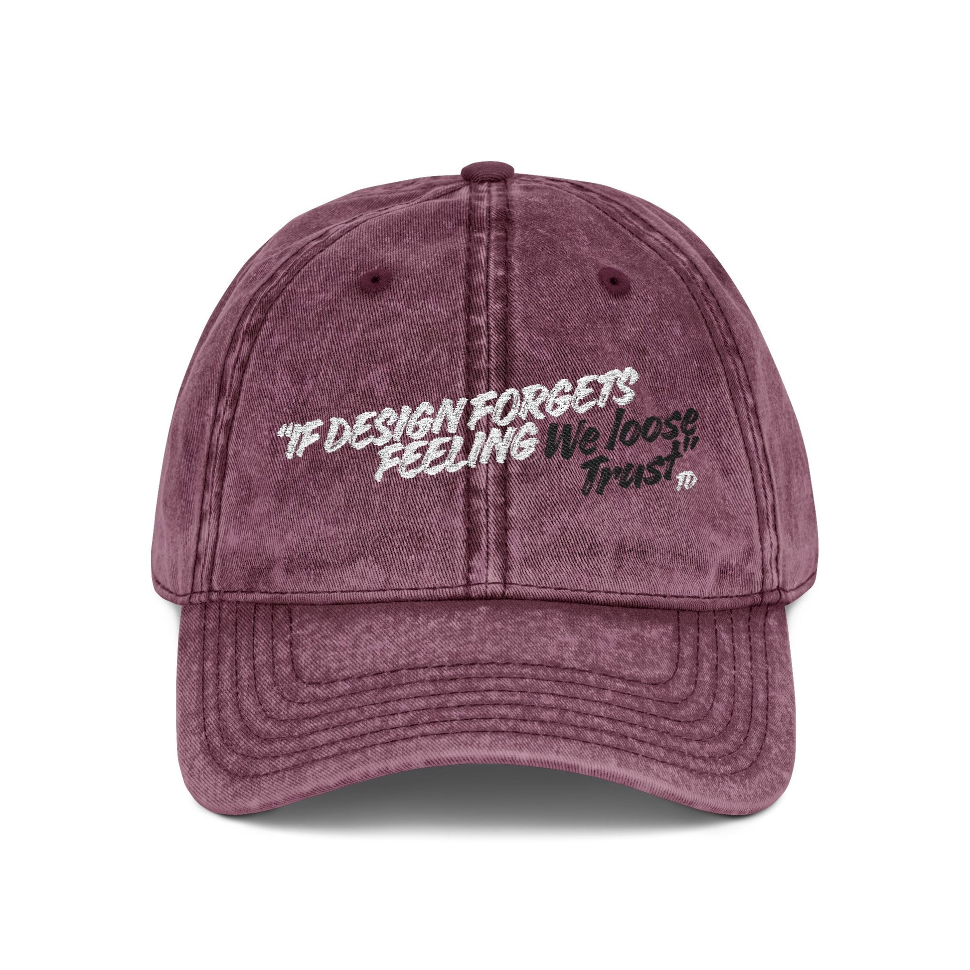 Vintage Embroidered Cap — 'Design Is Not Enough' puts a meaningful empathy motto on a soft, lived-in hat so you can make a quiet statement with confident, everyday comfort.